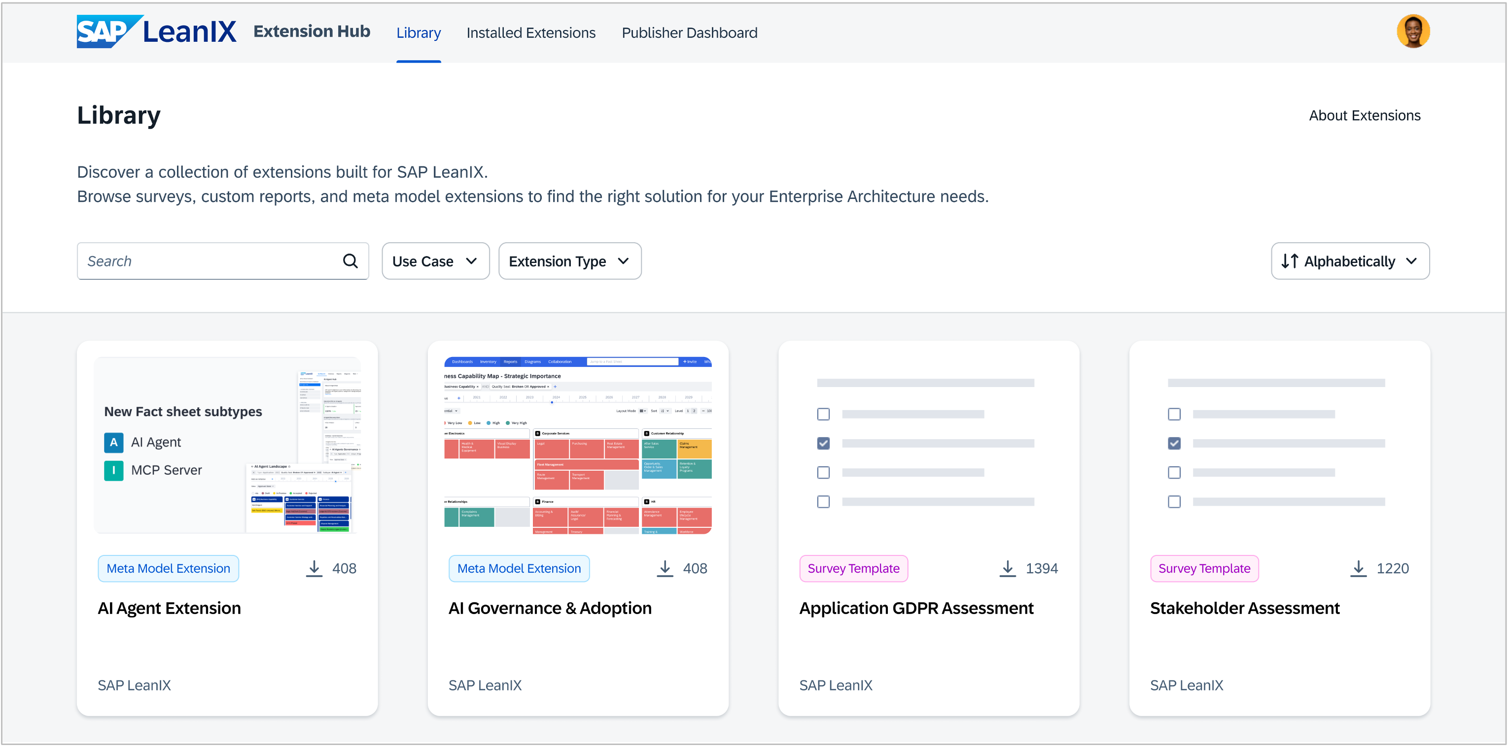 This initial release focuses on SAP LeanIX-sourced content, with the foundation in place to support more extension types and broader contributions in the future.