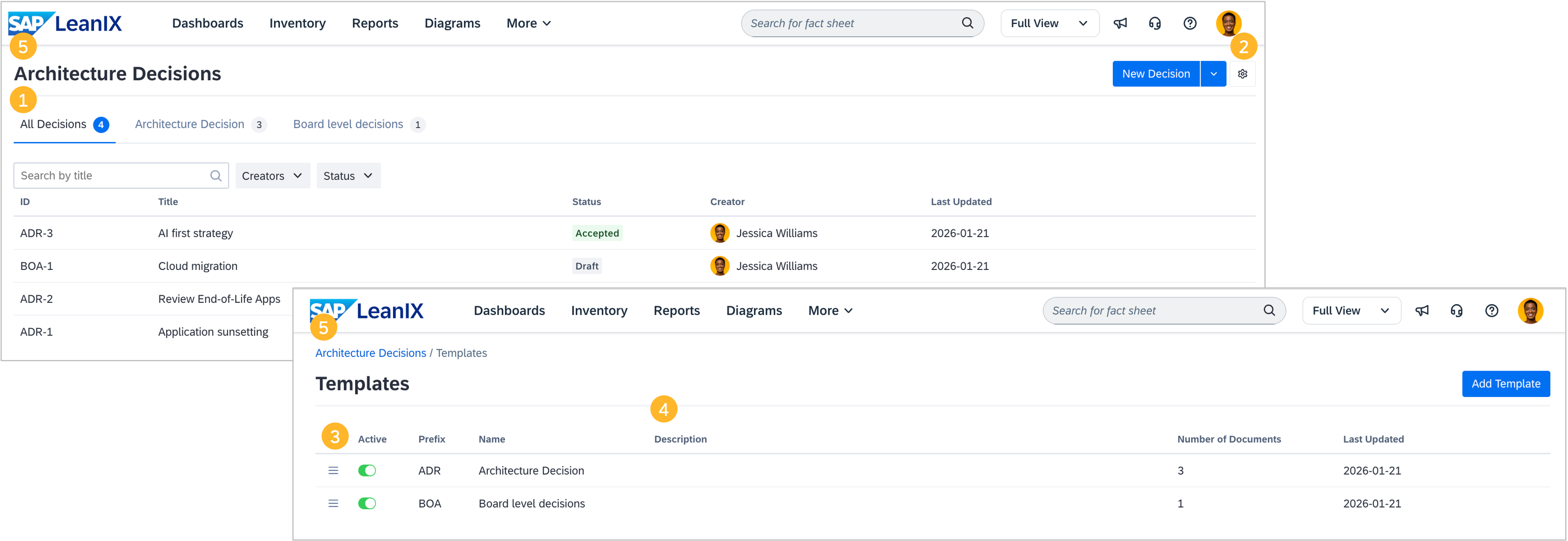 For workspaces with SAP LeanIX Architecture and Road Map Planning, we have made several improvements to architecture decisions: