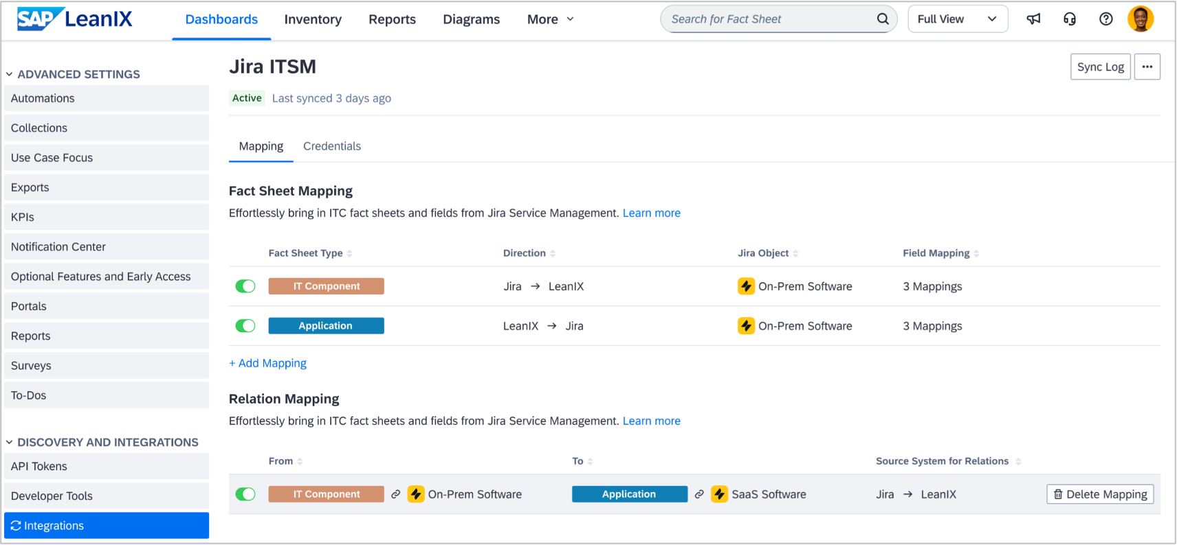 Keep fact sheet data in sync with Jira Asset & Configuration Management