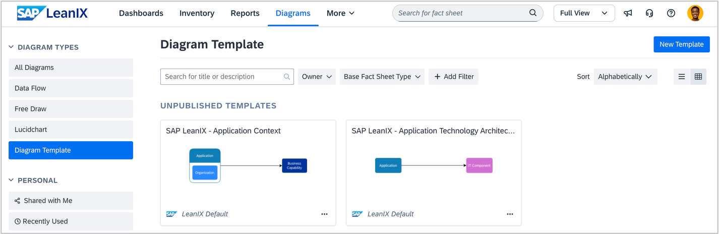Next, we plan to support multiple instances of the base fact sheet type within a single template, applying templates to existing free draw diagrams, previewing templates in the editor, and more advanced layout options. To view an explanatory video, please visit the original announcement.