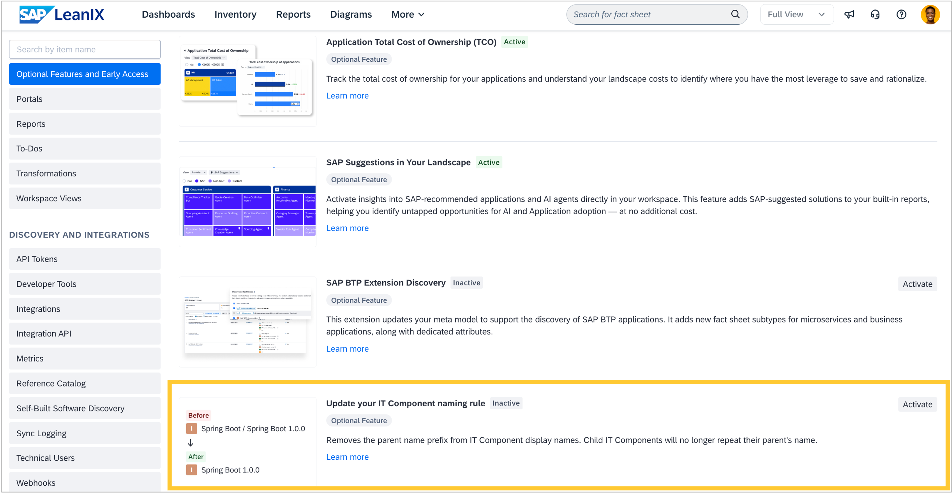 As an admin, you can now simplify the display names of IT components by activating the IT component naming rule extension. By default, child IT components inherit their parent’s name as a prefix, which can create long, repetitive names, especially when using automatic discovery. The new extension removes this prefix while preserving the parent-child relationship. To activate it, go to Administration > Optional Features and Early Access and select "Update your IT Component naming rule". This extension is only available for workspaces created before March 2026. Newer workspaces already use the simplified naming by default. Note that this change is irreversible and cannot be rolled back.